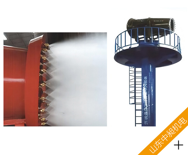 干霧抑塵系統(tǒng)是將水、氣兩種能源介質(zhì)調(diào)壓、調(diào)量后輸送至特制的雙流體噴嘴,在噴嘴的外部將水“剪切”成10um以下的水霧顆粒...
